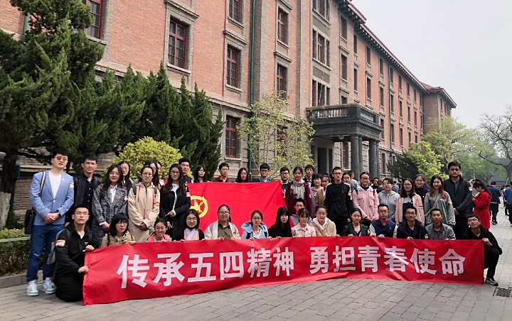 在迎接“五四”爱国主义运动100周年,建国70周年之际, 4月13日,2017级岐黄国医团支部、2017级卓越中药团支部、2018级岐黄国医团支部在北大红楼联合开展“青春心向党,建功新时代”主题团日活动。中医学院团委书记高鹏、中药学院团委书记王硕带领团支部35名支部成员参加了活动,同时还邀请了马克思主义学院青年教师程旺、吕薇担任微团课主讲老师。