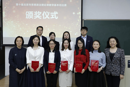 根据北京市委教育工委《关于举办第十届北京高校思想政治理论课教学基本功比赛的通知》安排,4月中上旬,北京高校思想政治理论课六个课程研究会受市委教育工委的委托,分别组织了“马克思主义基本原理概论”“毛泽东思想和中国特色社会主义理论体系概论”“中国近现代史纲要”“思想道德修养与法律基础”“研究生思想政治理论课”及“形势与政策”六大类别的预赛,决出了六类课程的预赛名次河奖项。其中,各课程预赛一、二等奖获得者晋级北京高校思想政治理论课教学基本功比赛决赛。我校派出了刘亚品和孙进宝两位青年教师参赛并晋级决赛。