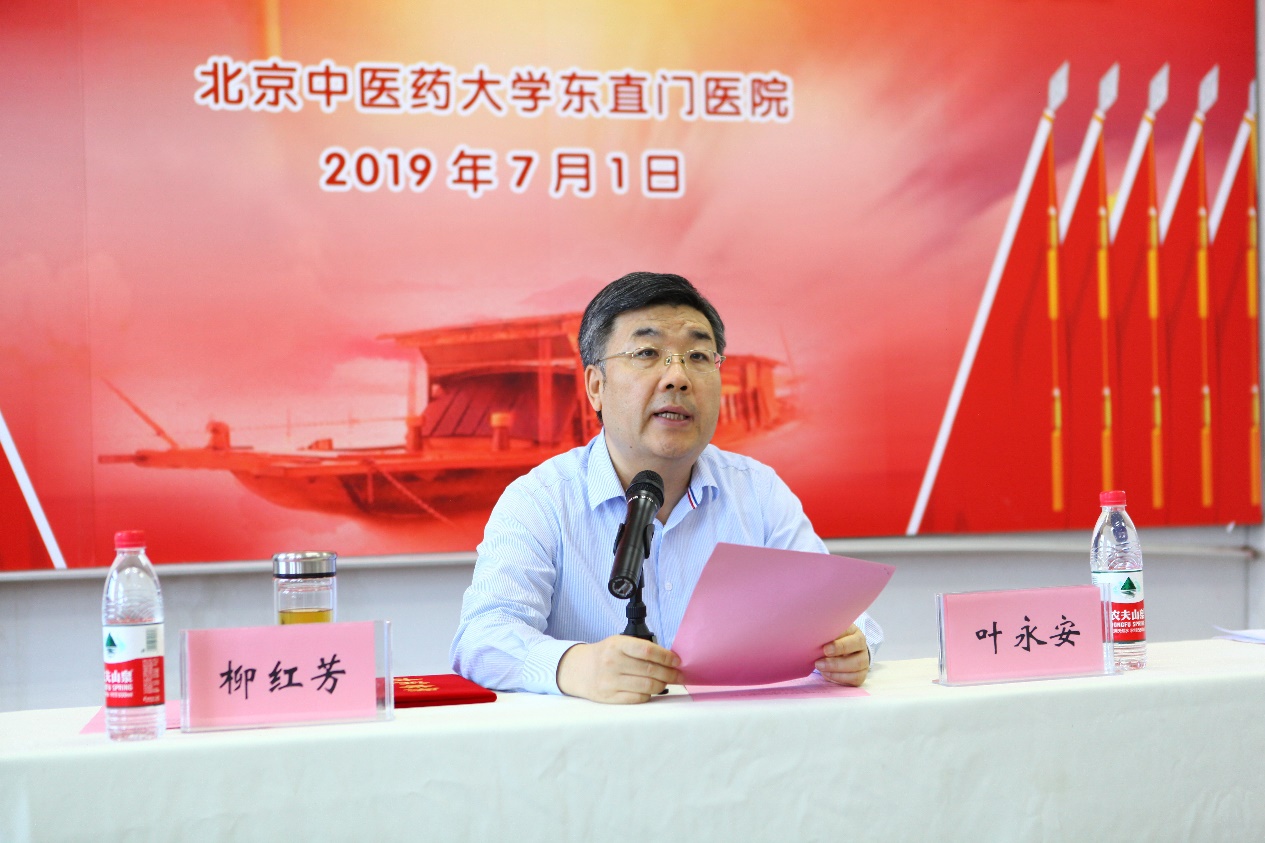 最后,党委书记叶永安代表医院党委向获奖者表示祝贺,向医院全体共产党员致以节日的问候。在讲话中,叶书记回顾了中国共产党所走过的98年光辉历程,并对全院基层党组织和党员提出了具体要求,希望各级党组织和广大共产党员要以受表彰的先进典型为榜样,充分发挥基层党组织战斗堡垒作用和党员先锋模范作用,履行党员义务,践行党员承诺,以更加坚强的党性、更加务实的作风、更加振奋的精神和更加强烈的使命感和责任感,扎实推进医院各项工作顺利开展,为建设东直门医院的美好未来继续努力奋斗。