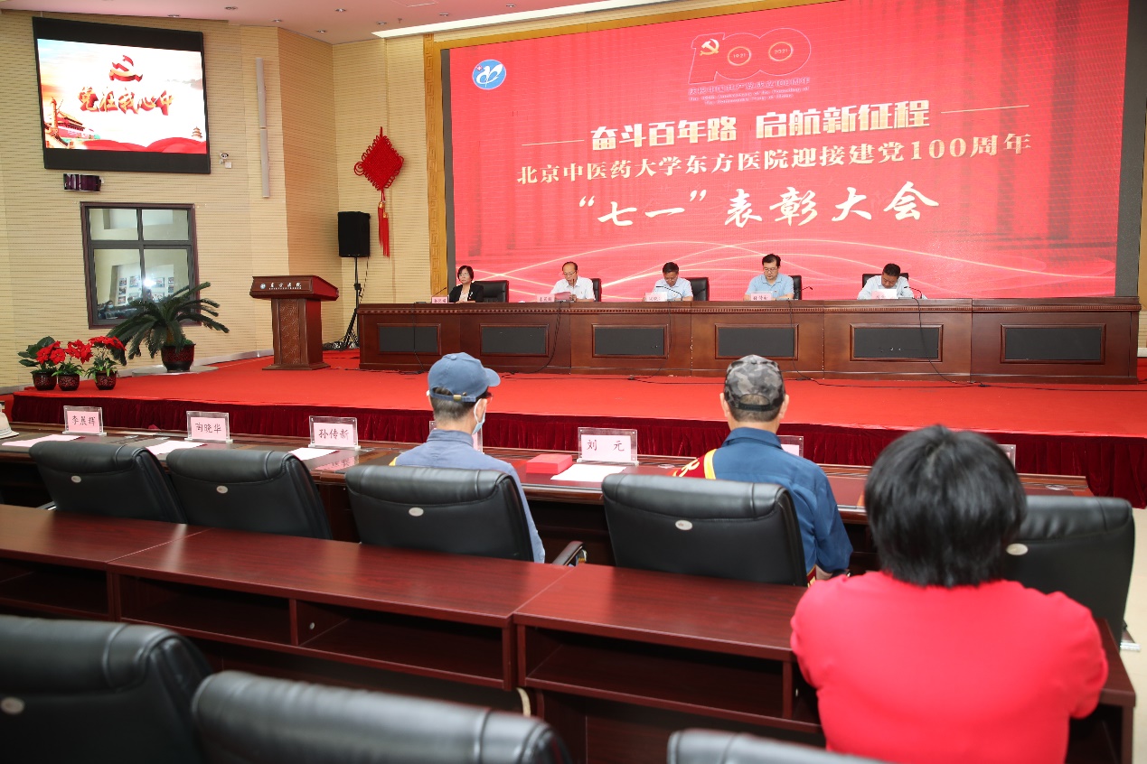 6月30日下午,东方医院在东楼二层报告厅召开“奋斗百年路,启航新征程”迎接建党100周年“七一”表彰大会。副校长陶晓华,党委常委、组织部部长孙传新,东方医院领导班子成员,中层管理干部、科主任、护士长、支部书记、民主党派及学生代表参加了会议。会议由医院党委副书记、纪委书记郭蓉娟同志主持。