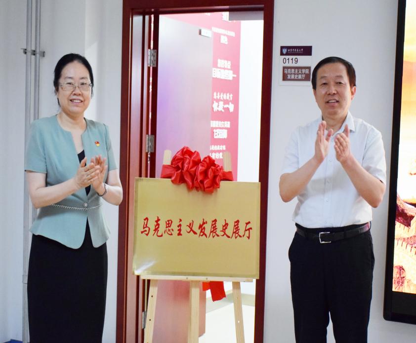7月13日上午,马克思主义发展史展厅正式揭牌。校党委书记谷晓红、党委副书记靳琦以及马克思主义学院全体教师参加了揭牌仪式。