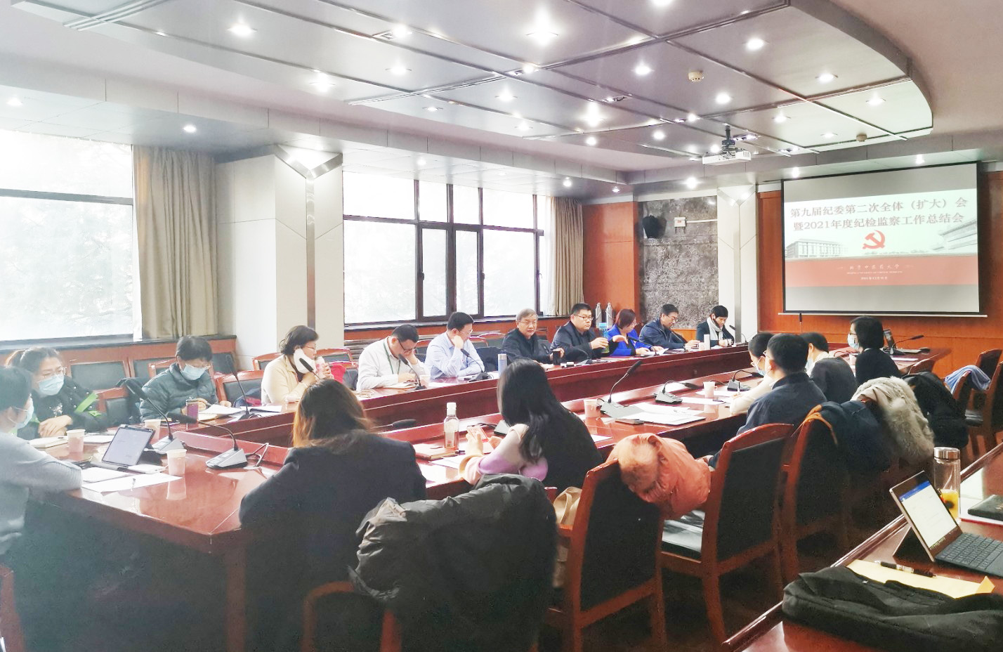 2021年12月31日,学校召开第九届纪委第二次全体(扩大)会议,对学校2021年度纪检监察工作进行总结。校纪委委员、各二级党组织纪检委员和全校专职纪检监察干部参加了会议,会议由校党委副书记、纪委书记蒋朗朗主持。