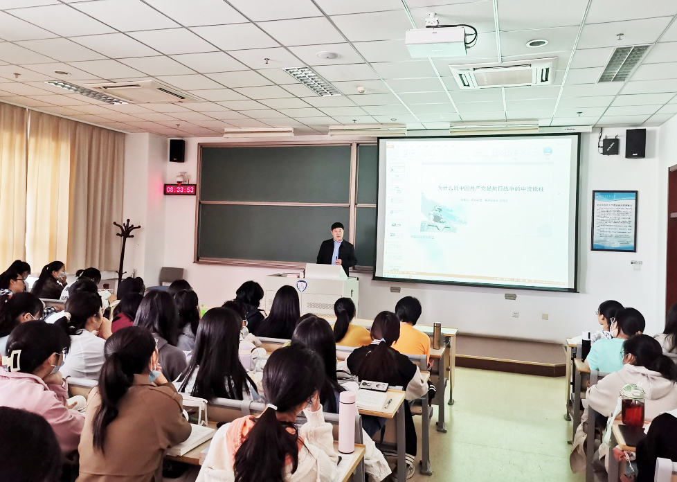 闫振凡校长助理以“为什么说中国共产党是抗日战争的中流砥柱”为主题向学生们介绍了抗日战争发生的历史背景,抗日战争时期国共两党的关系以及抗日战争期间中国共产党面临的困难与挑战。