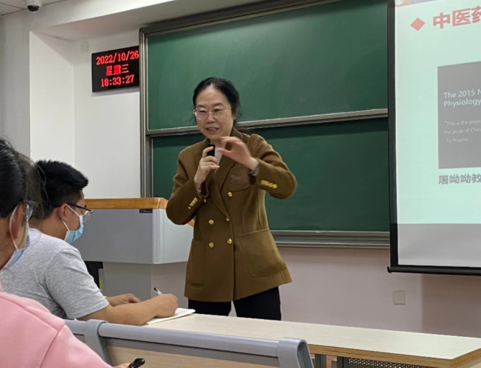 谷晓红书记此次授课的主题是“发挥中医药独特优势,助力健康中国战略”。谷书记从中华文明和中医药两个角度深刻阐释了习近平总书记“中医药是打开中华文明宝库的钥匙”的重要论述,深入讲解了如何准确把握传承创新实践路径与方式。她指出,中医药学子要树立对中医药的文化自信和价值定力,既要“传承精华”,又要“守正创新”,要以包容协同的胸怀,努力打造“四诊+”诊疗模式,西为中用,以中为主,综合诊断,走中西医结合的道路。
