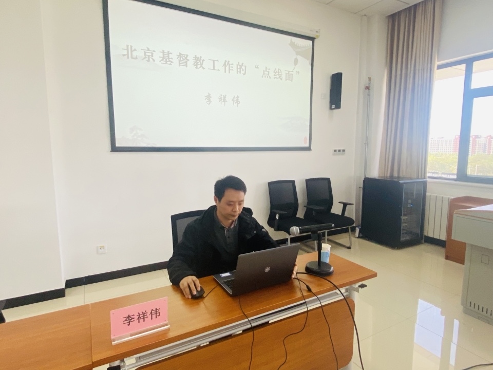 李祥伟处长结合自己多年来从事宗教工作的深厚理论功底和丰富经验,围绕“北京基督教工作的‘点线面’”这一主题进行了授课。讲座主题鲜明、内容丰富,既有深入浅出的理论阐述,又有旁征博引的案例分析,还有实用管用的工作方法,参加讲座的老师们均表示深受启发、获益良多。