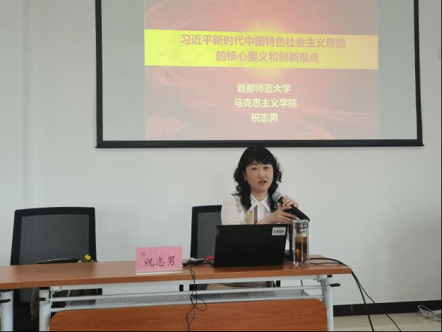 培训班邀请首都师范大学马克思主义学院祝志男教授作题为“习近平新时代中国特色社会主义思想的核心要义和创新观点”的讲座。他讲述了习近平新时代中国特色社会主义思想的渊源、时代背景、科学内涵与基本方略,阐明了习近平新时代中国特色社会主义思想的核心内涵、历史成就和伟大意义。