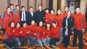 图为8月20日下午医疗队在西藏拉萨饭店受到卫生部部长陈竺(后排左五)、西藏自治区党委书记陈全国(后排左六)等领导接见。