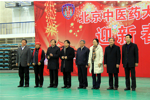 随着主持人宣布团拜会开始,校领导在党委书记吴建伟、校长徐安龙的带领下,走上舞台给大家拜年。分管离退休工作的靳琦副书记代表校领导致词。他首先对离退休教职工表达了亲切的问候和美好的祝愿,并就一年来学校在各方面取得的成绩进行了通报。他表示,学校取得的成绩是全体北中医人共同奋斗的结果,其中也汇聚了老同志们的巨大贡献,为此向老同志们致以崇高的敬意。