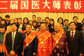 据8月19日公布的《关于表彰第二届国医大师的决定》,在人力资源社会保障部、国家卫生计生委和国家中医药管理局共同组织的第二届国医大师评选中,我校王琦教授、孙光荣教授荣获“国医大师”荣誉称号。10月30日在人民大会堂举行了隆重的表彰活动,国务院副总理刘延东出席。至此,我校已有五位国医大师。