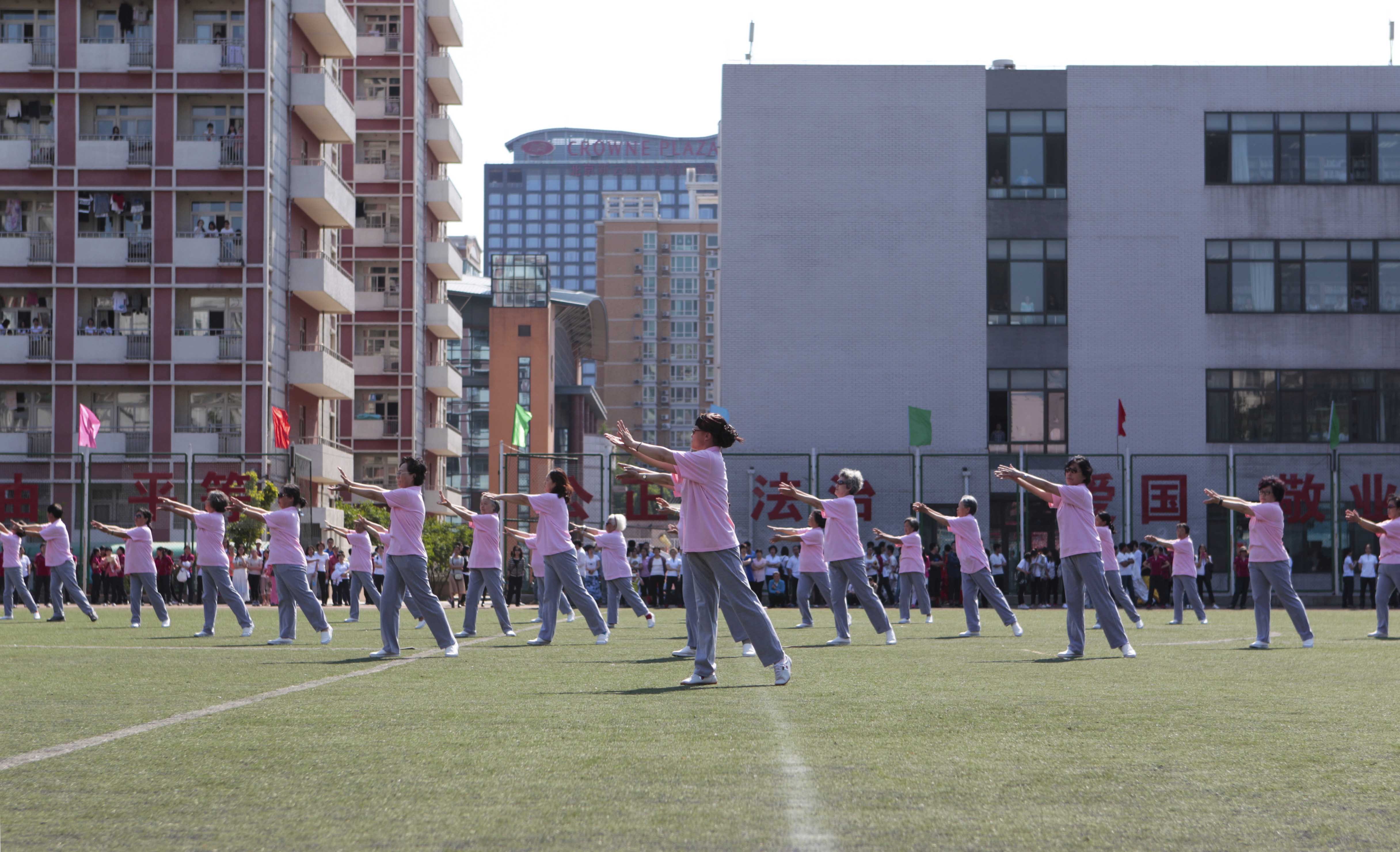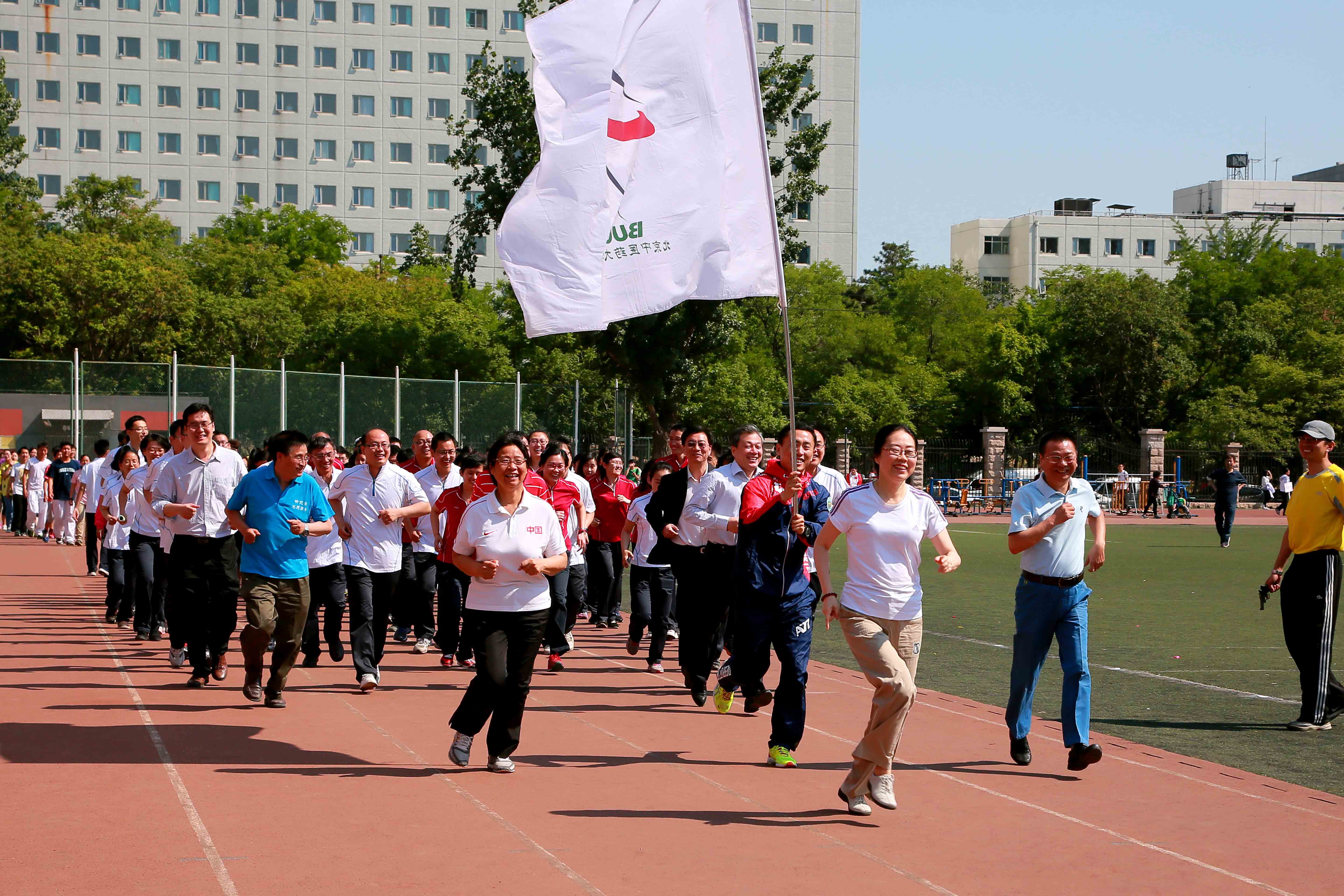 随后,离退休教职工表演了“中华通络操”,教职工方队表演了传统功法“易筋经”,校学生武术协会、健身气功协会及禅舞技击社进行了“功夫扇”表演,北京武术队和我校武术队联合进行了武术表演。最后,由校领导及部分师生、志愿者参与的“喜迎田径世锦赛,开启校园跑步季”象征性长跑活动将体育场气氛推向高潮。