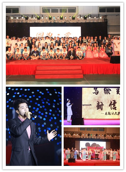 本次庆祝活动以“因为·爱”为主题,通过原创音乐叙事剧的表演形式,分为“耐心的温度”、“爱心的交响”、“细心的承诺”、“诚心的荣耀”、“责任心的担当”五个部分,表达了新生的护理力量对职业精神的理解,展现南丁格尔精神在现代的传承。高年级学生结合自己学习经历深情地讲述了临床护理专家用耐心与专业打动患者,通过改革护理措施与管理模式,为患者搭建崭新生命通道的感人故事,展现了护理人平凡、朴素但却无比高尚的梦想,歌颂了护士奉献的不仅仅是爱与善良,更是专业、敬业、精益求精。来自中日友好医院的临床带教老师和礼仪社的同学们通过倾情的演讲和舞蹈展现出护士心中的“信”“望”“爱”。伴随着悠扬的小提琴独奏,医院工作的真实经历震撼着在场每一位学生的心灵,同学们深深地感到面对脆弱无助的生命,遭受身心痛苦的生命,作为医学生,永恒不变的态度是对生命的敬畏。来自低年级的未来“男丁格尔”们用舞蹈精彩再现手术室工作场景,演绎了医护人员在平凡中坚守对生命的守护,用细心坚守对生命的承诺。来自护理学院的青年教师代表动情地讲述了自己成长的心路历程。她希望同学们要爱专业,更要满怀着责任心去爱患者,责任高于热爱。舞蹈团的同学们用一支《生命之魂》表达了她们将用爱与责任去为生命助力,去续写护理事业新的荣耀。当中国人民解放军第302医院的老师讲述她们带着祖国和人民的嘱托去塞拉利昂抗击埃博拉病毒的亲身经历时,在场的同学们再一次被中国以负责任的大国形象展现在世界面前所震撼,即将接受燕帽的同学全体起立,向援塞医疗队的老师致敬,向祖国致敬。