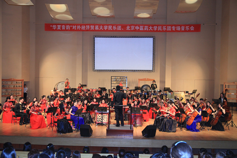 5月31日晚,我校大学生艺术团民乐团在中央民族乐团音乐厅与对外经济贸易大学民乐团举办 “华夏音韵”民乐专场音乐会。副校长翟双庆、对外经济贸易大学副校长赵忠秀与两校师生共同聆听此次音乐会。