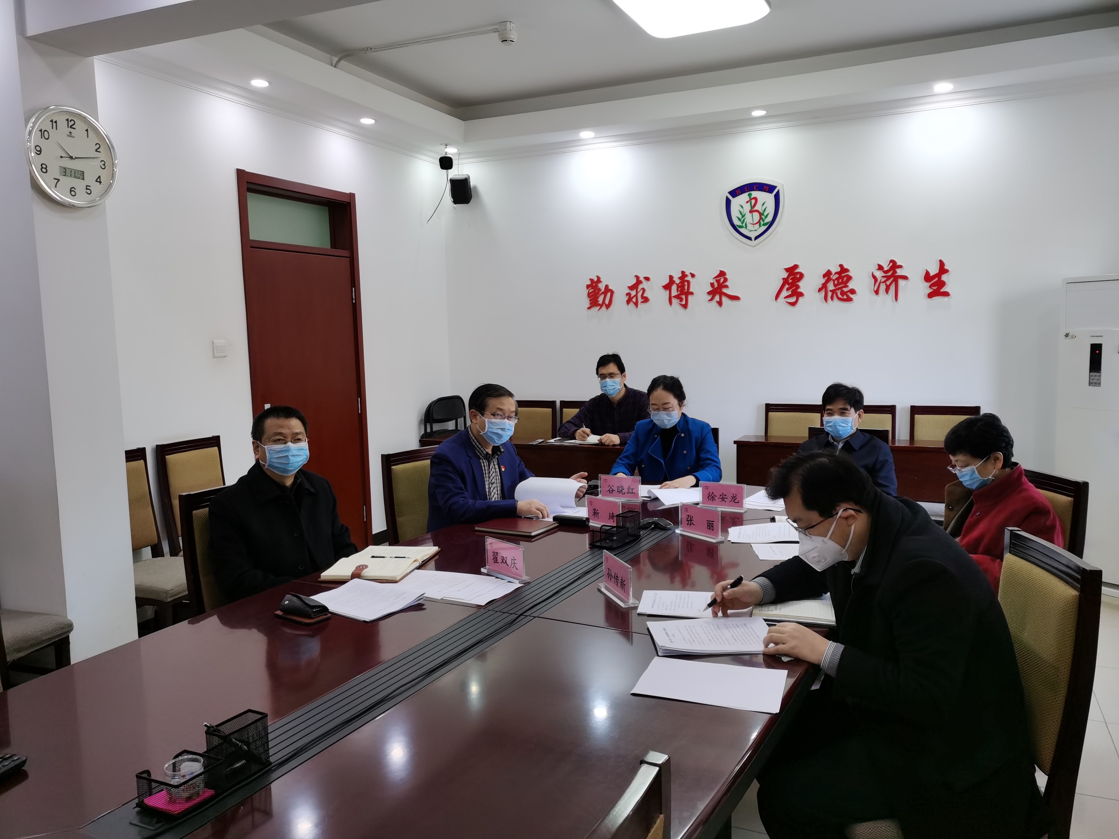 会前,全体与会人员学习了《北京中医药大学2020年党建思政工作要点》和《北京中医药大学“三全育人”综合改革方案》(电子版下发给与会者)。