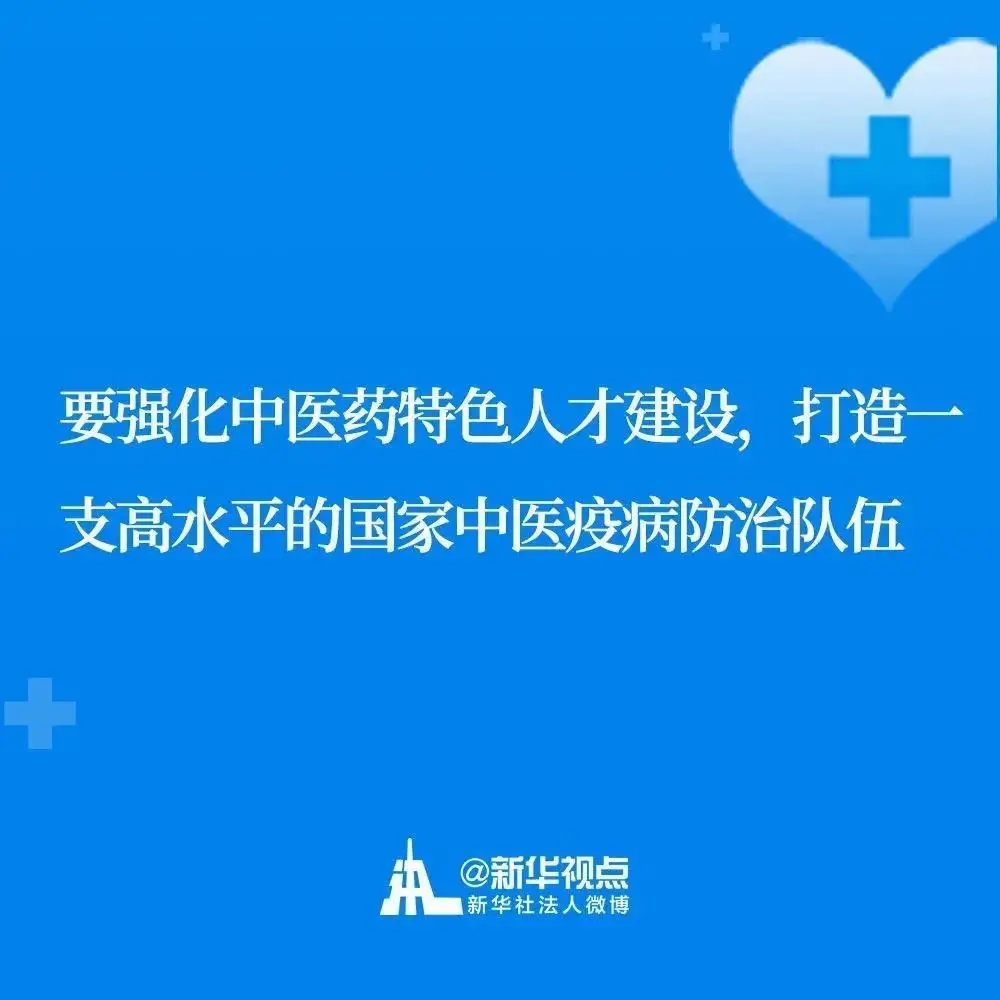 习近平总书记指出,要加强古典医籍精华的梳理和挖掘,建设一批科研支撑平台,改革完善中药审评审批机制,促进中药新药研发和产业发展。要加强中医药服务体系建设,提高中医院应急和救治能力。要强化中医药特色人才建设,打造一支高水平的国家中医疫病防治队伍。要加强对中医药工作的组织领导,推动中西医药相互补充、协调发展。