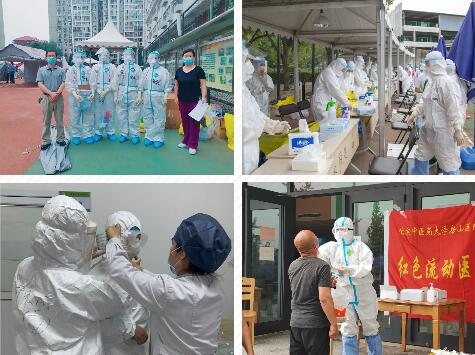 北京市疫情严峻之时,京内各附属医院医务人员和学生志愿者纷纷冲在咽拭子采集第一线,在高温下与病毒鏖战,投入到护卫首都人民生命安全和健康的战斗中。