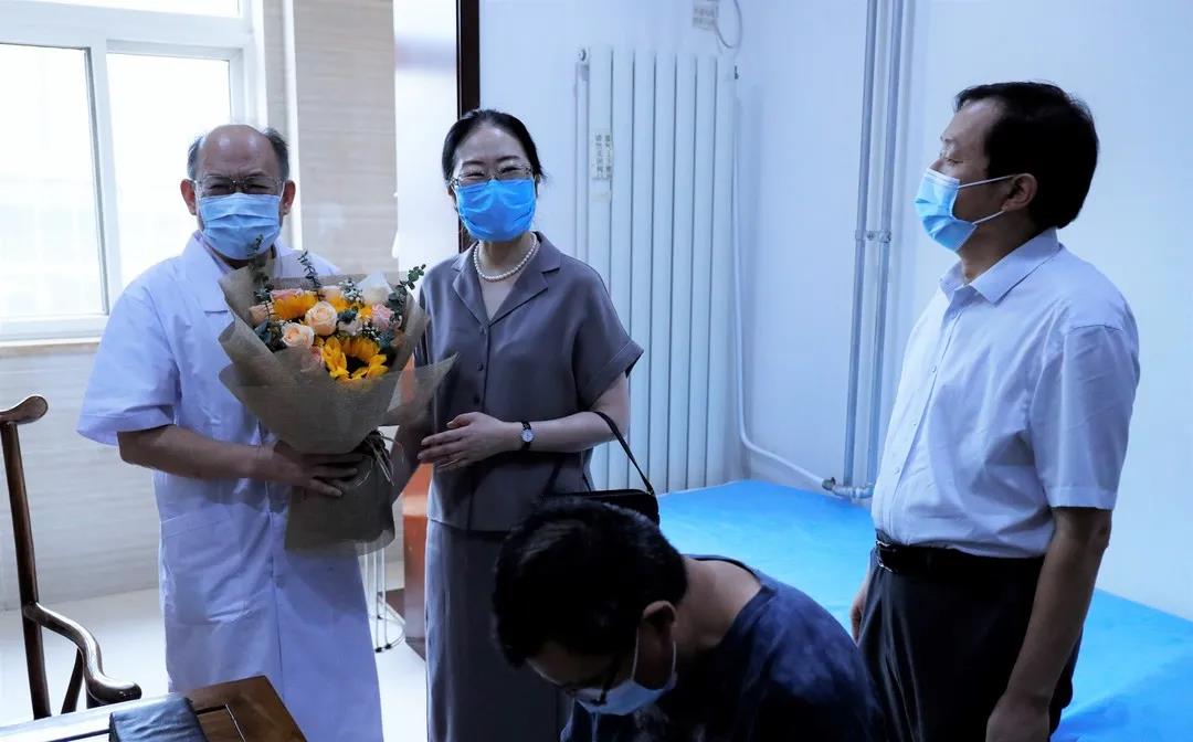 8月17日,校党委书记谷晓红,校党委副书记、纪委书记蒋朗朗一行赴第一临床医学院(东直门医院),首先看望了国家级名老中医、北京市中医管理局防治新冠肺炎专家组成员、东直门医院新冠肺炎防治专家组组长姜良铎教授和国家援鄂医疗队队员梁腾霄副主任医师,为他们带去节日的问候与祝福。在医院呼吸科、急诊科、血液肿瘤科、门诊咨询处等科室部门,谷晓红书记分别看望了抗疫期间医院主检医师团队成员于维霞主任医师、东直门医院确诊第一例新冠肺炎患者的主诊医师毕玮、坚守在科室抗疫一线的张雅月副主任医师、疫情期间连续奋战在门诊预检分诊一线的门诊护士长王冬梅。谷书记勉励大家要不忘初心,牢记使命,继续弘扬敬佑生命,救死扶伤,甘于奉献,大爱无疆的崇高精神,当好人民健康的忠诚卫士,为群众提供高质量的医疗卫生服务。