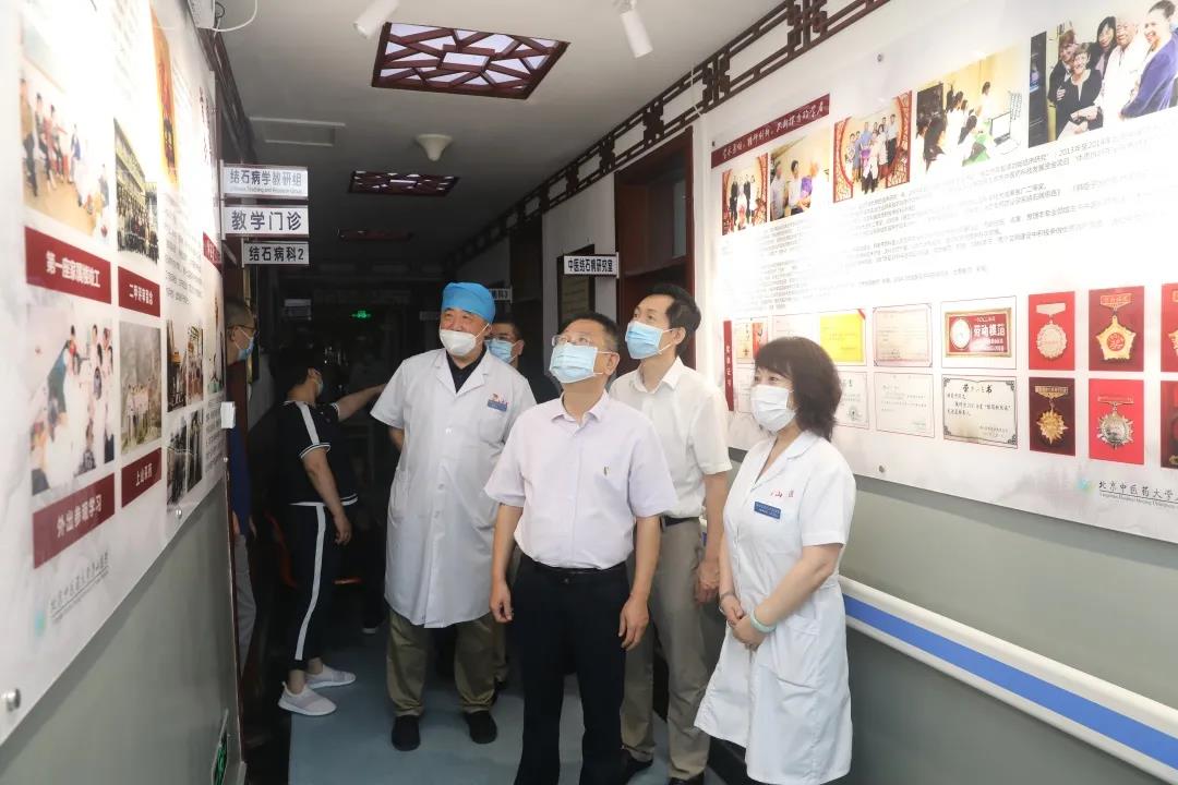 在第六临床医学院(房山医院),校党委副书记、副校长翟双庆,副校长王伟分别走访了医院感染性疾病科、结石病科、急诊科、核磁室、耗材办等科室,看望慰问了92岁高龄仍坚持出诊的全国基层名老中医韩臣子、始终坚持在抗疫一线的感染性疾病科李莉医师、疫情期间身患疾病仍坚守岗位的急诊科主任高岩、主动报名请缨驰援武汉并坚守科内工作60余天的护士长姚春辉,赞扬了他们舍小家、顾大家,担负急救重任、无私奉献的敬业精神和医者情怀。校领导还对相关科室的中医传承工作、大型医疗设备投入及集约化服务平台建设等工作进行了现场指导。