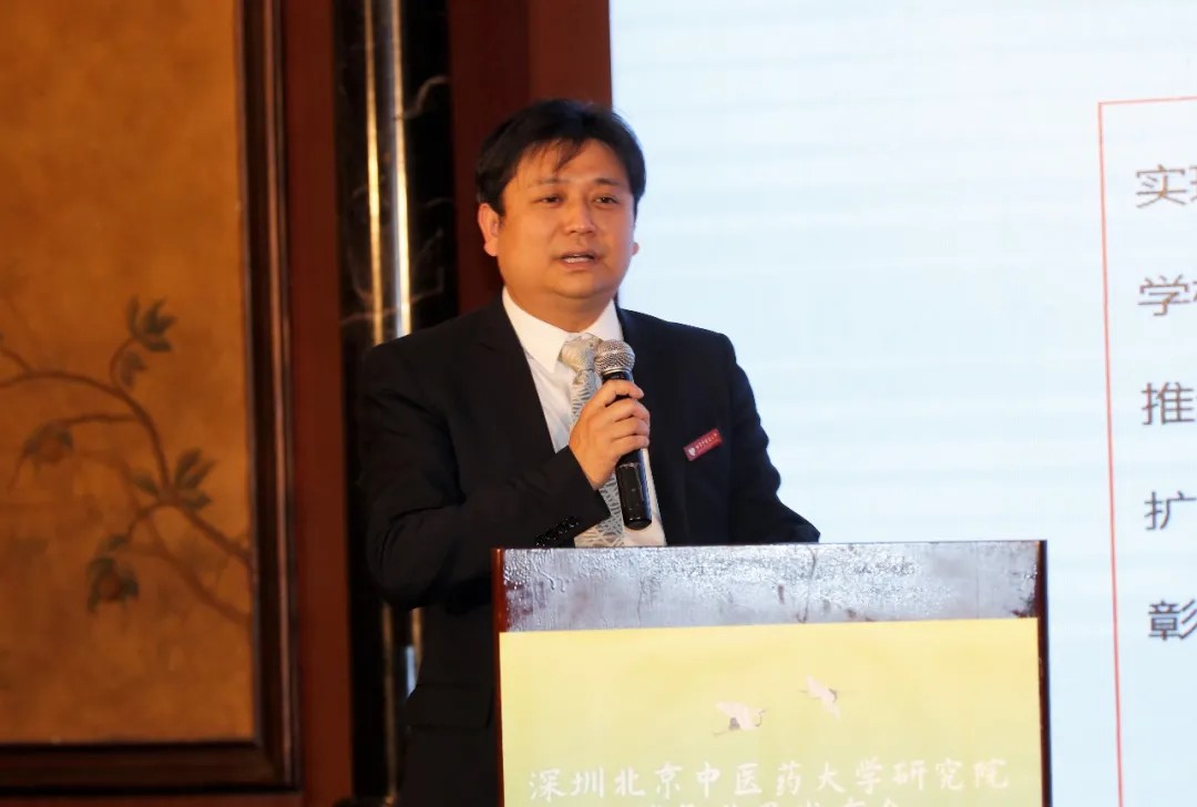徐安龙校长在致辞中表示,作为教育部直属的中医药大学,北京中医药大学始终坚持扎根中国大地办学办医,充分发挥中医药院校特色优势,自觉肩负起社会责任,为健康中国贡献北中医智慧和力量。以海外“中医中心”和孔子学院搭建全球健康平台,以中医药为载体助推中华优秀文化走向世界。深圳北京中医药大学研究院作为学校在粤港澳大湾区重点打造的科技成果转化平台,历时四年筹备建设而成,肩负着从零到一突破创新的历史使命。学校主动服务粤港澳大湾区,在改革开放的前沿深圳成立临床医学院和研究院,一是体现了北中医在新时代的新格局,这是北京中医药大学的战略选择,既符合社会发展的需求,也符合北京中医药大学服务社会的办学宗旨。二是体现了北中医担当创新使命,用创新思维和创新方法来推动校企合作,打造中医药产业服务社会的崭新模式,校企携手共同推动中医药科研成果走向社会、服务大众。三是希望各科研团队和投资人用“做事业”的心来合作,放眼长远,坚守长期呵护人民群众生命健康的初心,为中医药新产品新技术助力健康中国建设贡献力量。