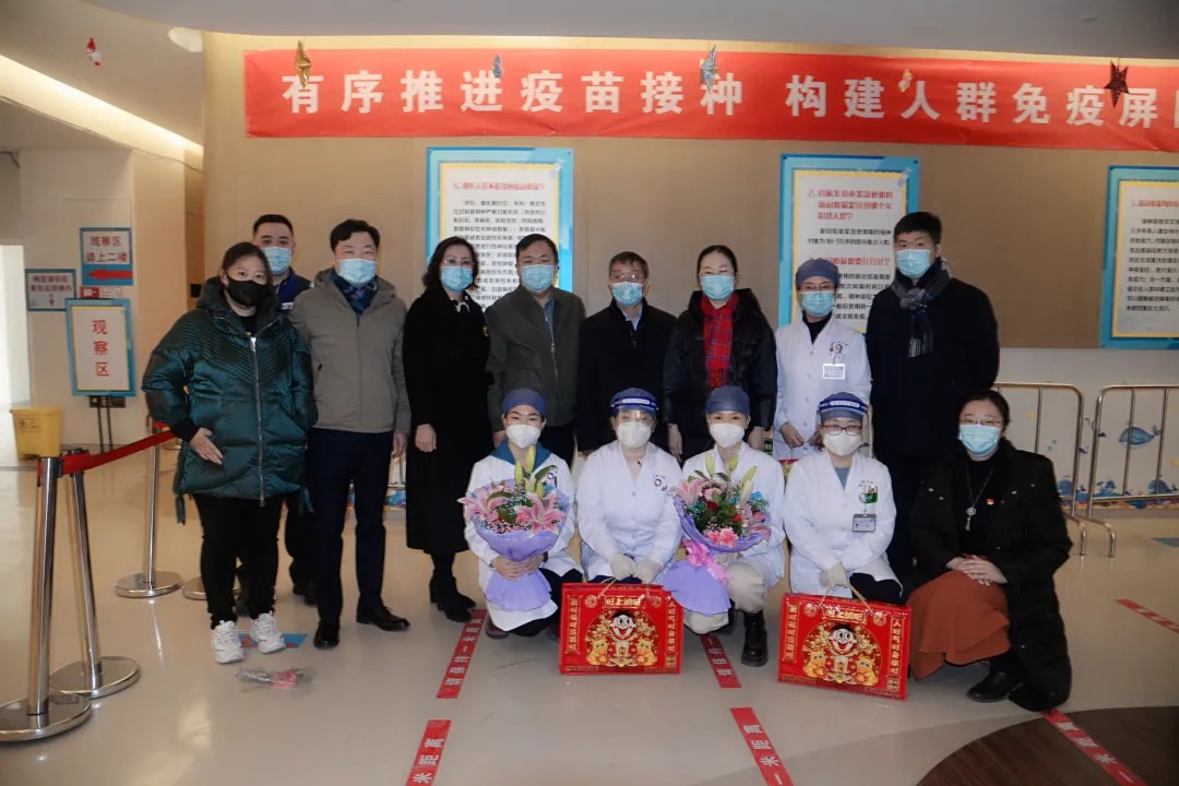 在第三附属医院,谷晓红书记、陶晓华副校长一行先后前往急诊科、门诊、社区中心临时疫苗接种点慰问,对医护人员们长期以来辛勤工作、舍小家为大家、坚守岗位的执着精神表示敬意,并对大家为护佑百姓健康所做出的贡献表示感谢。在给大家送上新年祝福的同时,嘱咐大家一定要做好各项疫情防控措施。