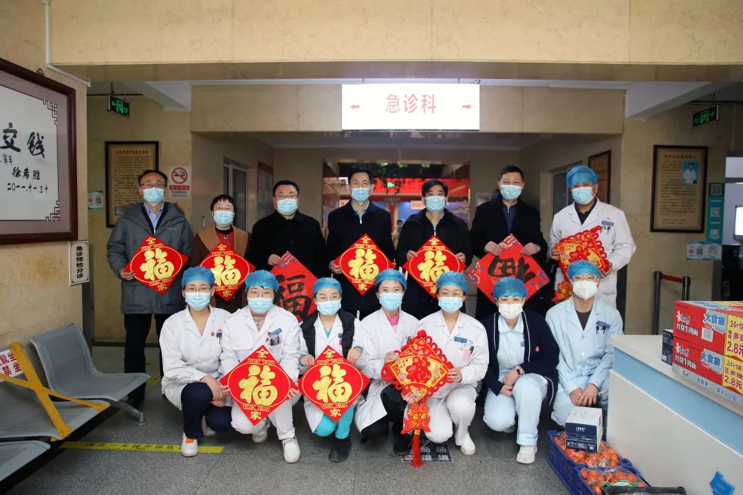徐安龙校长、王伟副校长一行满载新春佳节的祝福与问候,来到东方医院,亲切慰问了坚守在一线的医护人员。他们首先来到急诊科,仔细询问了春节期间排班值守情况及疫情防控工作情况,嘱咐大家注意休息,做好防护。随后,徐校长一行来到防疫的重点科室呼吸科,详细听取了呼吸科春节期间的工作安排,提出要遵循“以患者为中心”的核心理念,为人民健康提供有力的医疗保障。