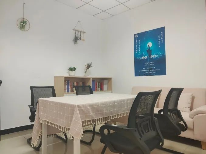 除了办理各项事务,这里还为同学们提供一个静心读书的环境与氛围。每周周二、周四下午14:00—17:00,同学们可前往事务中心活动室现场读书,参加“静读一小时”活动。每次时长至少为一小时,阅读过程中不可以使用手机或电脑,不间断或外出。