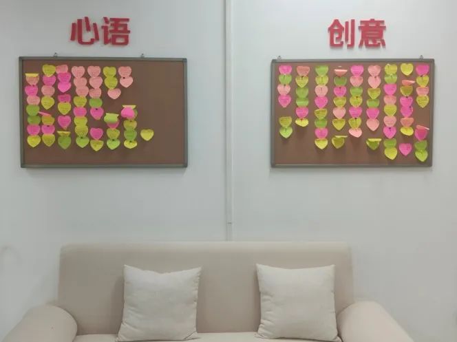 事务大厅还设置了“心语心愿”“ 创意种子”表白墙,供大家记录心情和灵感。
