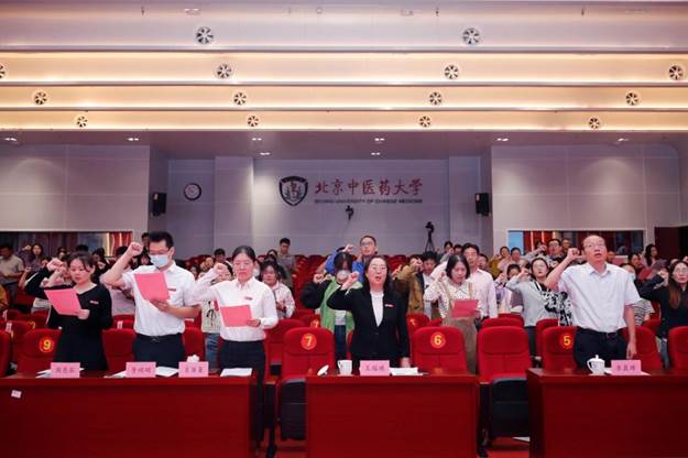 全体新职工宣读《北京中医药大学教师誓词》