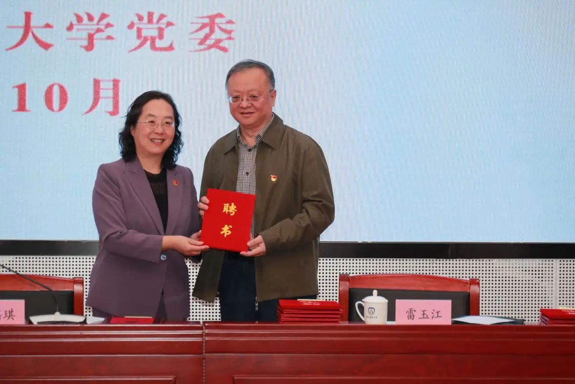 受教育部党组委托,校党委书记王瑶琪首先向雷玉江同志颁发了教育部党建工作联络员聘书。