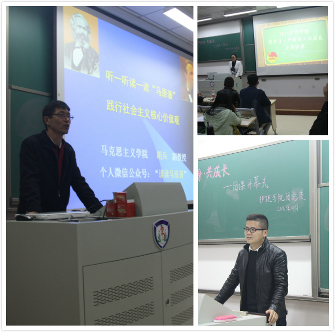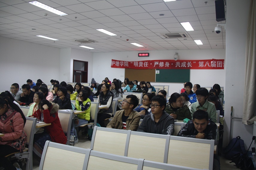 为进一步加强学生骨干队伍建设,提升学生骨干的思想道德修养和综合素质,增进学生骨干驾驭工作的能力,护理学院于10月27日在良乡校区举办第八期团课第一讲主题讲座。本期团课的主题为“明责任严修身共成长”。马克思主义学院胡兵老师、护理学院党总支副书记牛慧君、团总支书记詹来明及近100名学生骨干参加了本次活动。