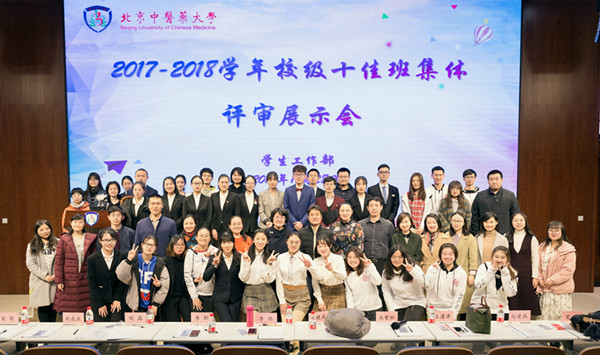 经过激烈角逐,最终2016级中医学(岐黄国医)班、2017级护理学一本1班、2015级中医学(卓越针推)2班、2017级中药学(卓越中药)班、2017级法学(医药卫生)班、2016级中医学(卓越针推)班、2016级中医学(卓越针推对外)班、2017级英语(中医药国际传播)班、2017级中医学(卓越中医儿科)班、2017级中医学(五年制班)二班10个班级脱颖而出,荣获“2017-2018学年北京中医药大学本科十佳班集体”称号。