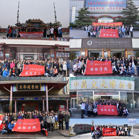 4月13至14日,国际学院举办2019年度第一期“访药都感知中药产业魅力,寻文化推动中医国际事业”安国学习实践活动。来自蒙古、泰国、马来西亚、新加坡、韩国、日本、哈萨克斯坦等国家的36名留学生前往素以“药都”和“天下第一药市”著称的河北省安国市,先后参观访问了药王庙、数字新药都、中心交易厅、药都国医馆、中药文化博物馆、河北省道地药材种质资源种植区等单位。