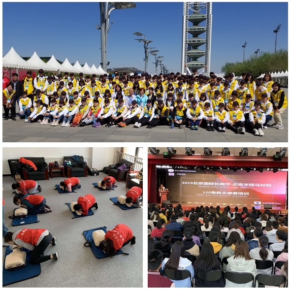 赛前,为圆满完成此次志愿服务活动,中医学院团委、微光志愿者协会做了充分的准备工作,邀请北京急救中心团委书记吕征、北马组委会志愿者负责人左珊、北京市急救中心应急办王迎等老师进行马拉松比赛理论知识培训。同时还邀请北京120急救中心9位老师分组进行了实操培训,心肺复苏、心脏按压、人工呼吸等,经过理论培训和实操学习后,专家组进行了逐一考核,270名志愿者全部获得了初级急救证。