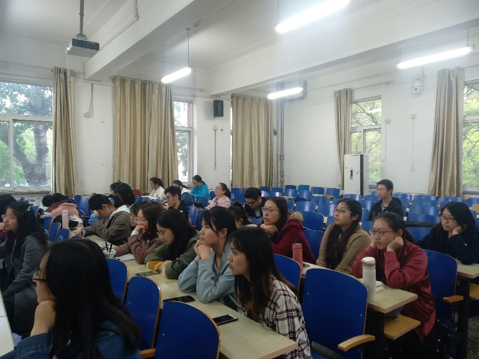 4月26日晚,人文学院2019届英语班7位优秀毕业生代表,与2020届预毕业生分享他们保研、考研和留学的经历经验,并耐心地为16级两个英语班同学答疑解惑。