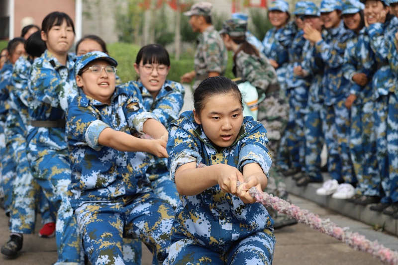 王耀献副校长向担任军训团教导员的辅导员老师们致以问候,充分肯定了老师们的辛勤付出。随后,王耀献副校长一行在军训团政委学工部、武装部部长李玮和基地领导的陪同下来到训练场,代表学校为全体参训师生送上中秋节祝福,并寄语同学们“健康是硬道理”,希望大家要保持快乐的心态。王耀献副校长一行还观看了2019级新生的拔河比赛决赛,亲自上阵指导拔河技巧,为参赛学生呐喊助威,并为获胜的营队颁奖。