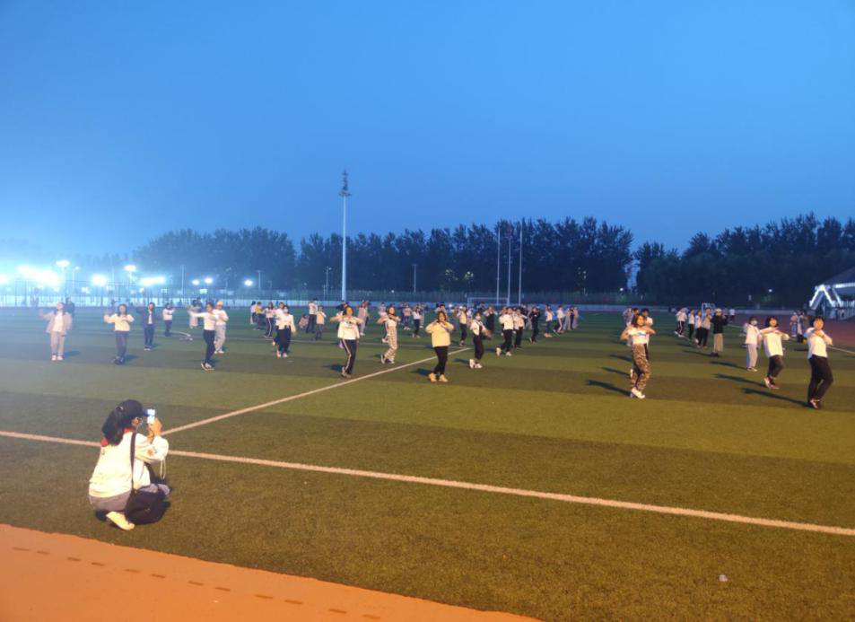 10月1日晚上,同学们进行集体舞表演,用活力四射的舞蹈为祖国喝彩,为祖国母亲庆生。