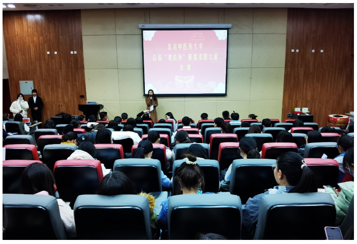 11月24日,由我校招生与就业处、中药学院主办,中药学院就业创业指导服务中心承办的首届北京中医药大学“岐伯杯”模拟求职大赛决赛在良乡校区西院管理学院一层报告厅举办。来自中药学院、针灸推拿学院、管理学院、人文学院的十名同学进入最终的决赛角逐。本次活动由招生与就业处副处长宋萌、中医学院党委副书记赵建磊、中药学院党委副书记任智宇、针灸推拿学院党委副书记陈静漪,江苏先声药业、昆药集团、鲁南制药等企业的人力资源负责人,以及各学院负责就业工作的专职辅导员担任评委。中药学院全体辅导员以及百余名来自各学院的学生评委来到现场观摩学习。