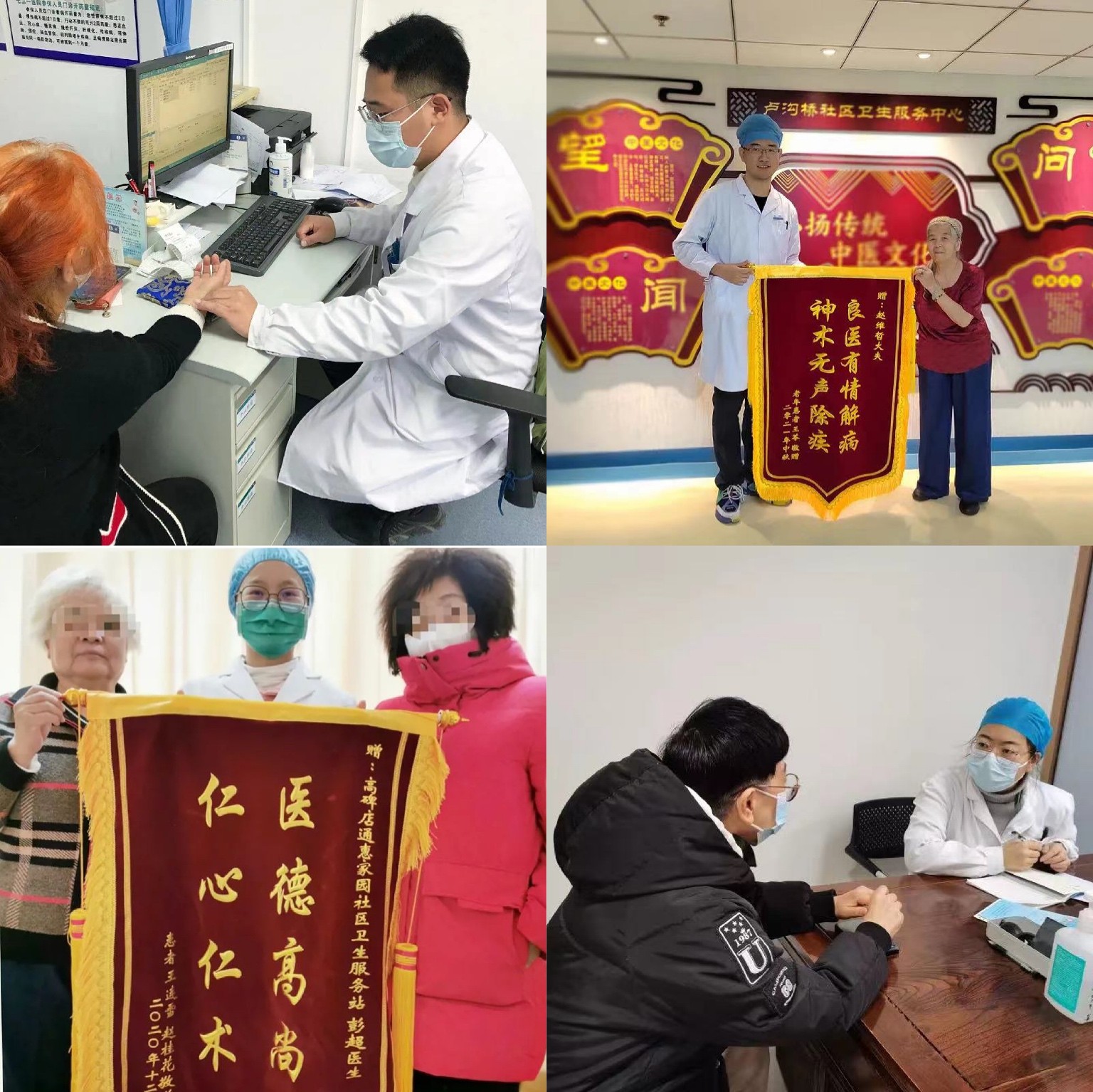 社区服务中心是三级诊疗过程的首要环节,也是基层居民卫生健康的重要保障。各丹心基地为帮助学员快速融入医院、进入角色、快速成长,专门制定丹心学员培养方案、安排专人指导带教、开展医院及诊疗相关规则制度培训,为学员独立开展诊疗工作夯实基础。高碑店社区彭超、卢沟桥社区赵维哲通过针药并用疗法治疗腰膝关节疼痛、膝关节炎,有效缓解了患者痛苦,得到患者高度肯定并获得锦旗。西罗园社区肖狄、新村社区刘博、蒲黄榆社区陈宇航等在治疗中发现社区患者多数是病情复杂的老年人,除了提供医学诊疗外,还需要学会心理沟通,做到真正走近患者、了解患者。如何更好地为患者服务成为督促丹心学员奋发学习、不断成长的内生动力。