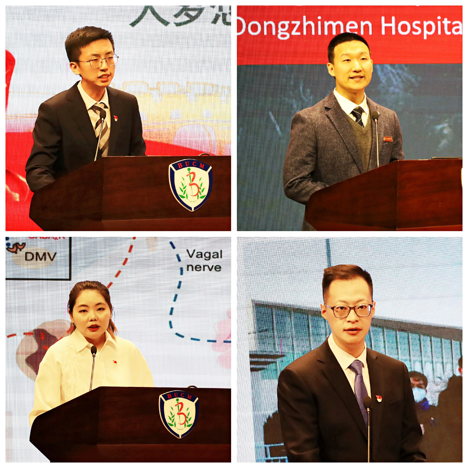 2021年国家奖学金获奖博士生张耀夫、杨娜娜、蒋里、赵国桢四位同学作为首场报告宣讲人,紧密围绕一百年来党领导人民取得的四个伟大成就,结合当下时事热点,以及自己在北中医的成长成才经历,与大家分享了他们的学习体会、生活经历和人生感悟。