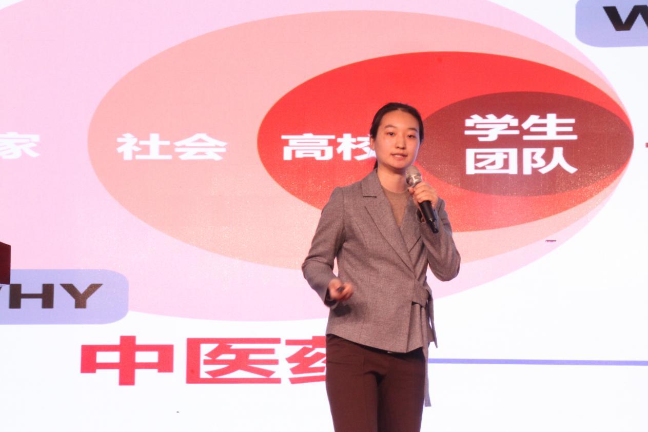 随后,我校第十三届“挑战杯”参赛团队“医网情深”负责人赵乐怡同学分享了团队从2019年至今不断建设完善社区中医药服务信息化AI助手的发展历程和参与赛事的经验体会。我校中医药文化进校园代表性项目“繁星计划”团队成员王沐清以13年点亮40余万中小学生中医药星空的“繁星计划”为例,通过拆解关键词,从解题思维以及评委思维两个角度分享社会服务与公共治理类项目展示思路和备赛心得。