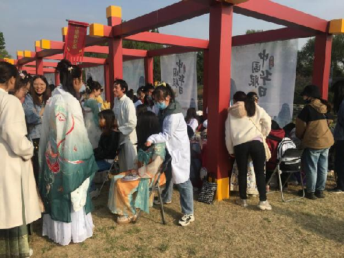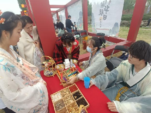 4月22日至23日,我校受共青团中央宣传部的邀请,派出优秀志愿者参加“中国华服日”,并在活动展示了香囊制作、叶脉书签、手诊、耳针、推拿等项目。