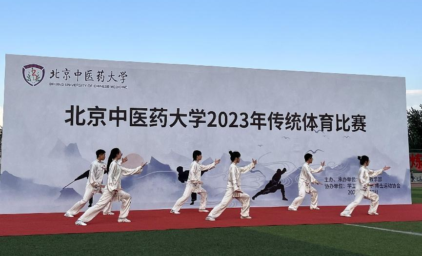 普通生武术队表演整齐划一、刚柔并济,彰显了北中医学子的风采;大学生世锦赛冠军北中医研究生王晓慧与全国冠军北中医本科生刘晓鹏的双人太极表演,形神兼备、收放自如,充分诠释了中华武术运动之美。