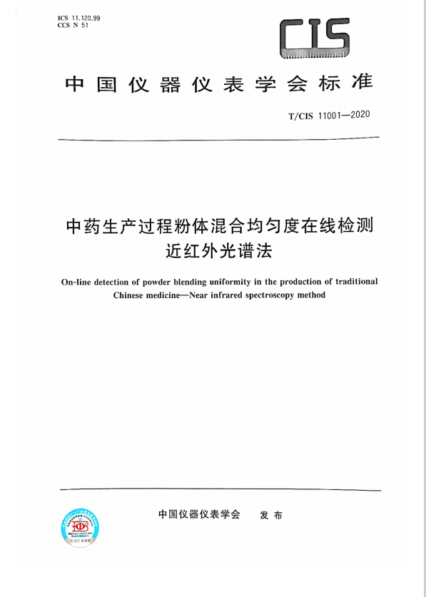 近日,中国仪器仪表学会发布“关于CIS标准制定工作组成立的通知”,由我校乔延江、吴志生教授团队牵头起草的《中药生产过程粉末混合均匀度在线检测 近红外光谱法》立项。该项目历时2年,完成了标准调研、标准工作组成立、标准草案形成、广泛征求意见稿、标准分支委员会评审和CIS标准委员会评审等标准研制程序,于今年3月由中国标准出版社正式出版发行。