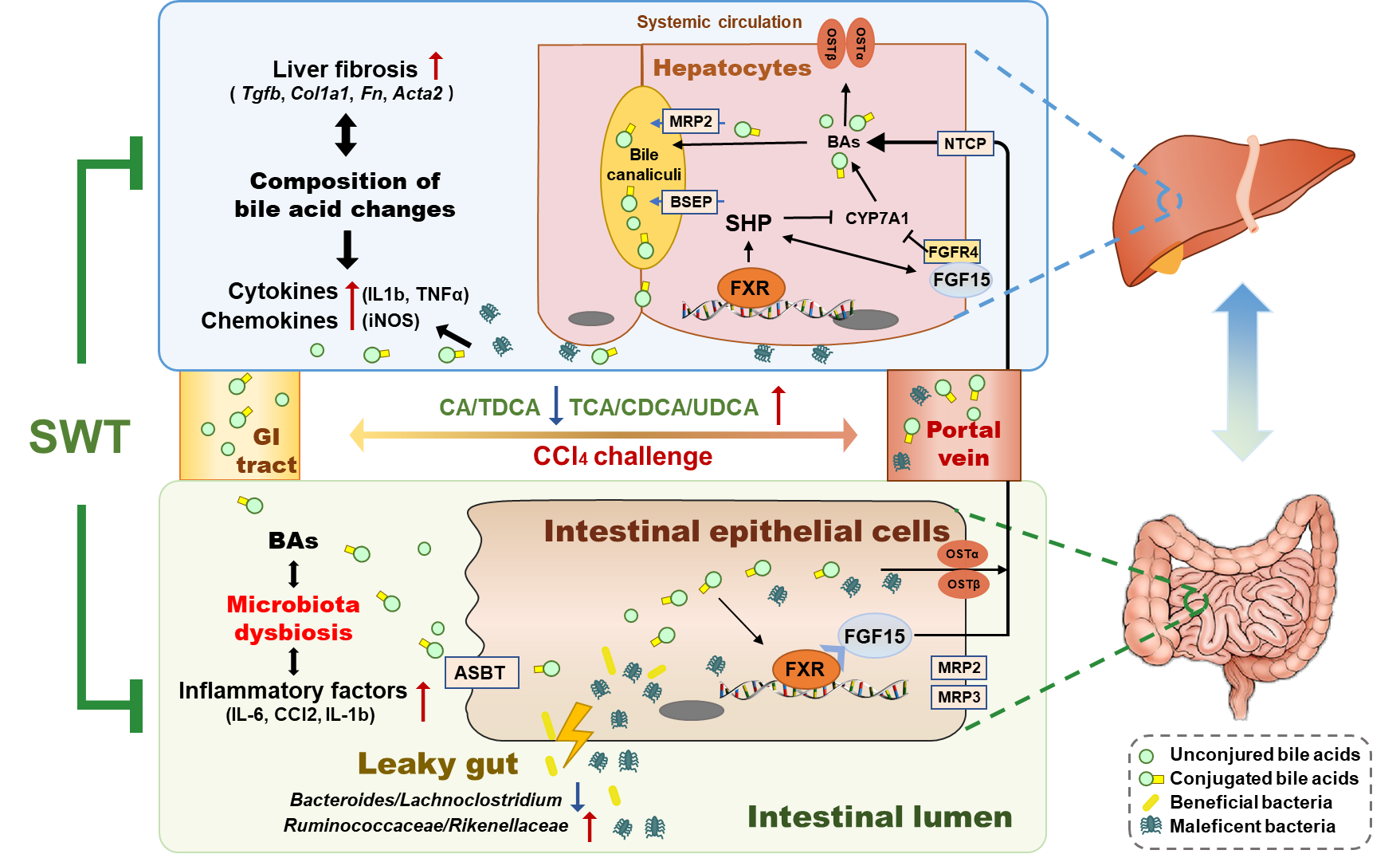 近日,我校生命科学学院李晓骄阳教授在影响因子5.455分的杂志Chinese Medicine(JCR全科医学与补充医学1区)上以通讯作者,北京中医药大学生命科学学院为第一完成单位发表题为“Si-Wu-Tang ameliorates fibrotic liver injury via modulating intestinal microbiota and bile acid homeostasis”的文章,该论文基于传统中医理论,创新性地利用经典名方四物汤治疗肝纤维化,另辟蹊径地阐释了四物汤的肝保护作用,突显出传统中医的神奇与魅力。本研究作为“老药新用”的典型,秉承中医“五脏一体观”理念的同时,充分说明传统中药治疗具有“多成分、多途径、多靶点”的优势,突出中医药治疗慢性消化疾病的特色优势,有助于推动中医药的高质量发展。