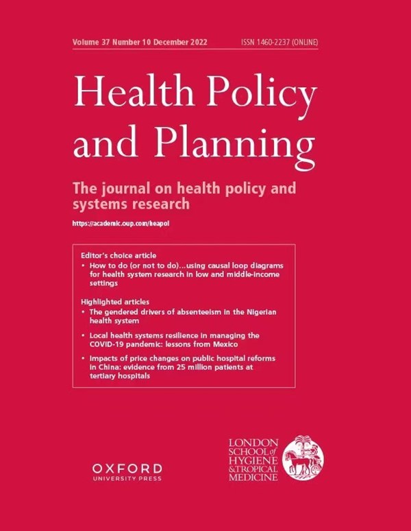 Health Policy and Planning 是国际卫生政策研究类顶级期刊之一,SSCI、SCI来源期刊,五年影响因子4.423,每年收录的中国学术论文5篇左右。