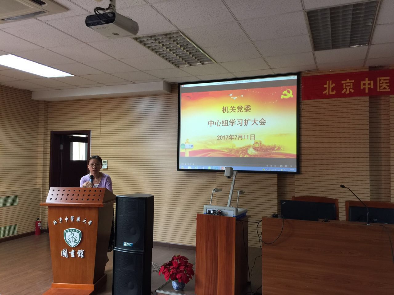 7月11日,机关党委召开中心组学习扩大会,机关党委书记陶晓华及党委委员、各党支部委员近60人集中观看学习了中国国防大学金一南教授《百年沧桑——从东亚病夫到民族复兴》专题视频讲座。