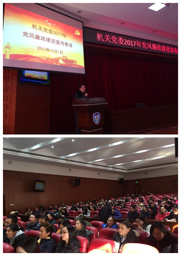 为深入贯彻习近平总书记系列重要讲话和党的十九大会议精神,按照学校关于“依法治校”“从严治党”的有关要求,结合学校党风廉政建设宣传教育月活动, 12月1日下午,机关党委组织全体党员集中观看了党风廉政建设系列警示教育片。