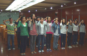 整个晚会最感人的是陈雅文和谢青同学为大家带来的诗朗诵《二十岁畅想曲》,22名同学举起右手,庄严起誓:“二十岁,让我们向祖国母亲庄严宣告:您的儿女已经长大,您曾经赋予我们的培养、关怀和希望,都将化作我们百倍、千倍的回报!也许我们会长成为一棵大树,伟岸挺拔,坚定崇高,也许我们会萌发成一株小草,默默无闻,芬芳满野。也许我们会站立为一道青山,巍峨绵延,风光无边。也许我们会平躺成一片原野,深沉博大,殷实富饶。”庄严的宣誓将晚会推向高潮。