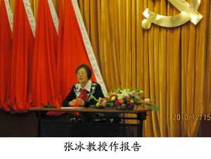 教学名师张冰教授报告的题目是:《师道尊严——我的理解与践行》。她从自身近28年的高校教学经历中,总结出自己的为师之道:师道尊严。“师”是教育实现的根基,教师的使命是为人师表,教师在教育工作中起主导作用。“道”是实现教学目的的途径。“尊”是教学地位之保障,有“道尊”、“自尊”、“他尊”。“严”是维持教学秩序之必须,对自己要以身作则,对学生要严格要求。