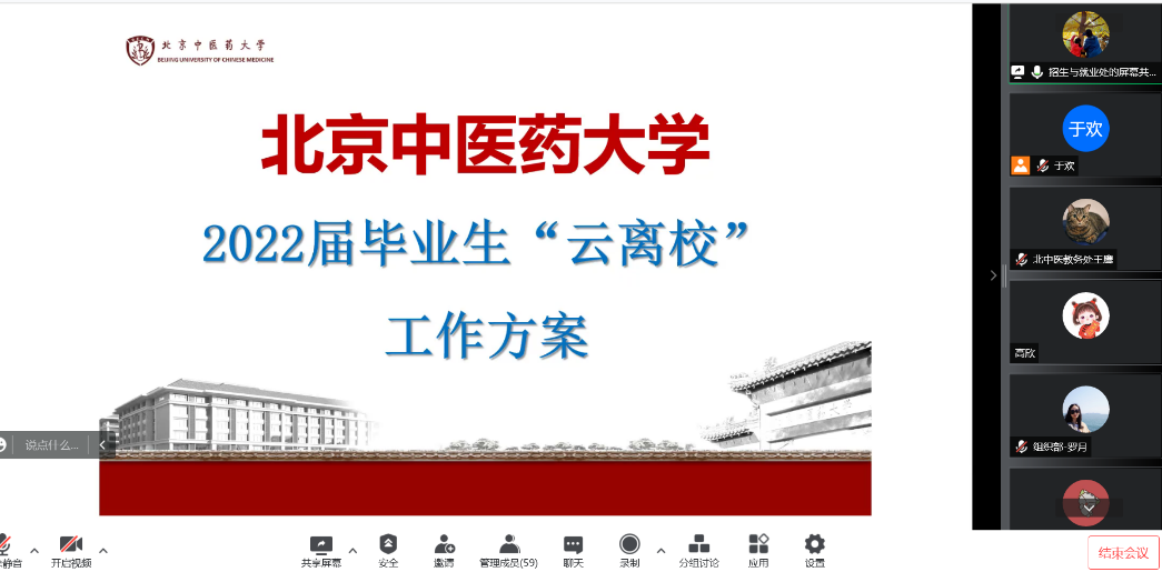 招生与就业处副处长徐静首先介绍了2022届毕业生离校工作准备情况,提出“学生为本,服务至上;加倍用心,加倍关爱,加倍服务”的工作理念,进一步简化离校手续,为毕业生打造优质离校体验。各部门负责人逐一介绍了毕业生离校工作流程,明确责任分工,确保毕业生离校工作顺利进行。
