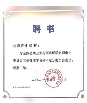 近日,全国科学技术名词审定委员会正式向我校管理学院李瑞锋教授颁发聘书,聘请为全国公共卫生与预防医学名词审定委员会卫生管理学名词审定分委员会委员。该委员会由来自哈尔滨医科大学、复旦大学、武汉大学、潍坊医学院、北京大学、西安交通大学、华中科技大学、中山大学、北京中医药大学等高校一共19位专家组成。